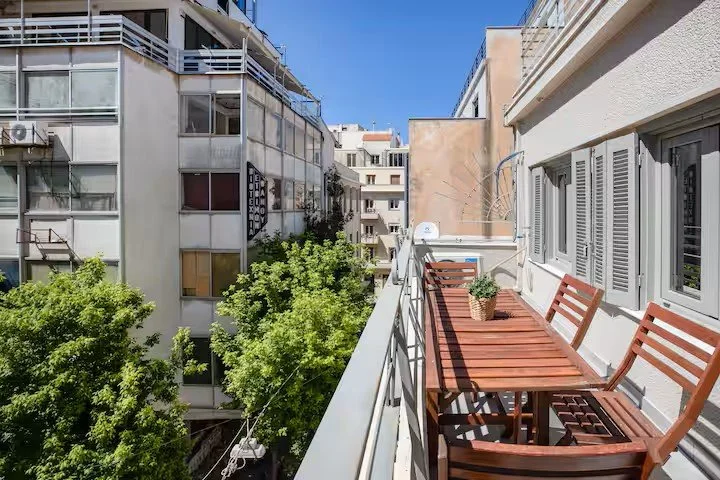 This unique apartment is located in a peaceful neighborhood near the Acropolis in Athens, and is fully furnished and equipped on the third floor. You'll find a fully equipped kitchen with an oven, fridge (with freezer), cutlery, dishes, pans, kettle, coffee maker, toaster, and a laundry machine. There's also a large closet for your convenience, and bed linen, towels, and bath amenities are provided. Additionally, the apartment is fully air-conditioned for your comfort.